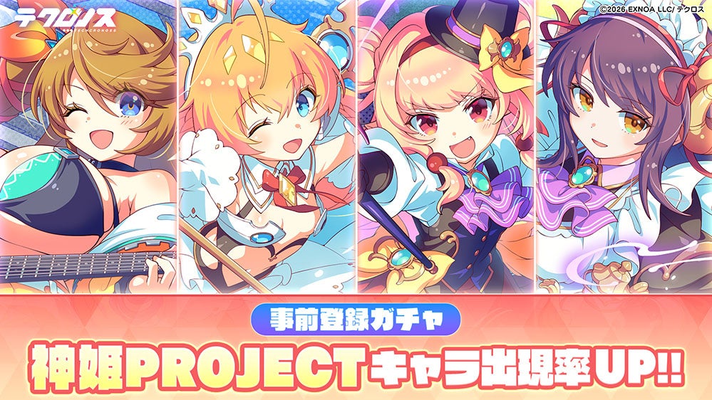 合同会社EXNOA(本社:東京都港区、CEO:東條 寛、URL:https://games.dmm.com)と株式会社テクロス(本社:京都府京都市右京区、代表:辻 拓也、URL:https://techcross.co.jp)は4つの刻が交差するクロスヒロインRPG『テクロノス』(https://techcronoss.com)の事前登録者数が5万人を突破したことを発表。これによりサービス開始後にガチャチケット2枚の配布が決定した。