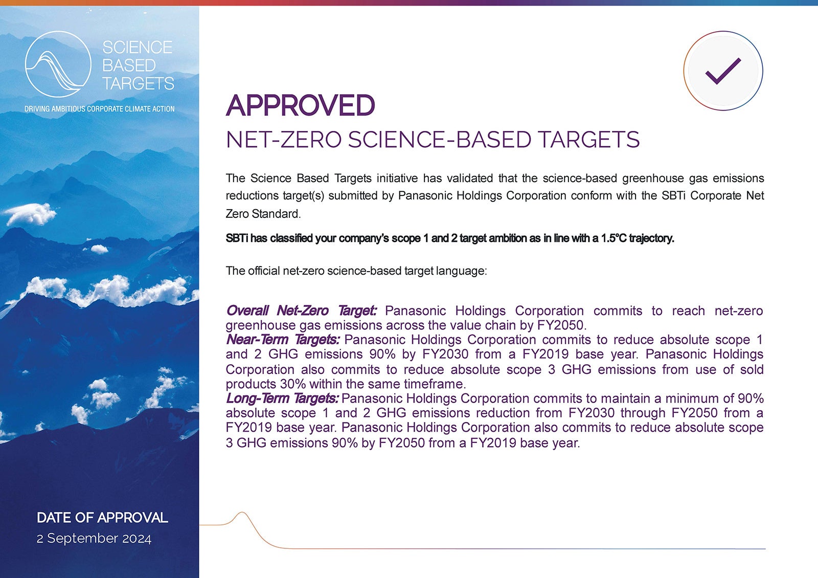 パナソニックグループがSBTiから「ネットゼロ目標」の認定を取得