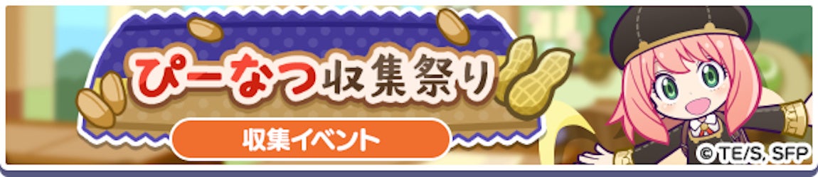 内容:収集アイテム「ぴーなつ」をあつめると、コラボ開催中にログインするともらえる「[★6]アーニャ・フォージャー」の★7へんしんボードで使用できる「[WS]アーニャ・フォージャー」などの豪華報酬が手に入る「ぴーなつ収集祭り」を開催中です。