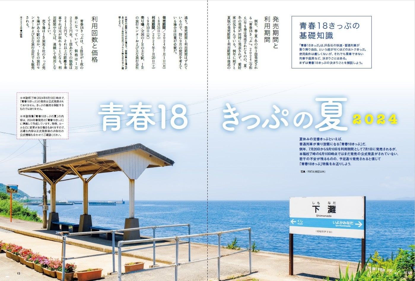 特集は夏旅の定番「青春18きっぷ」。使い方やプラン集など充実した情報を提供します。