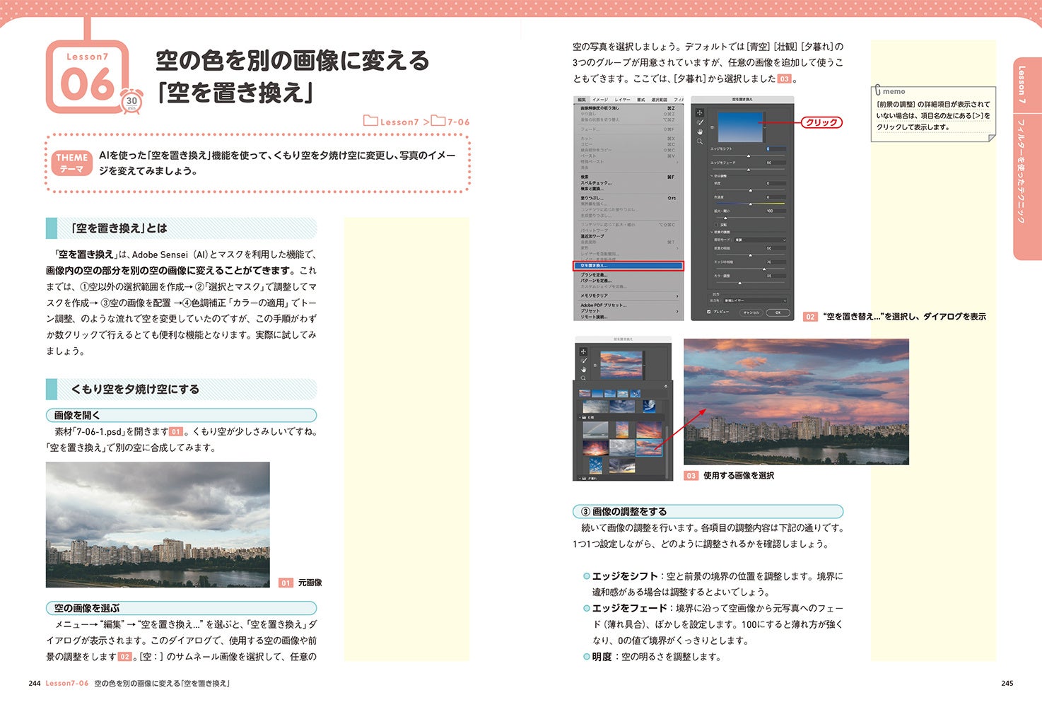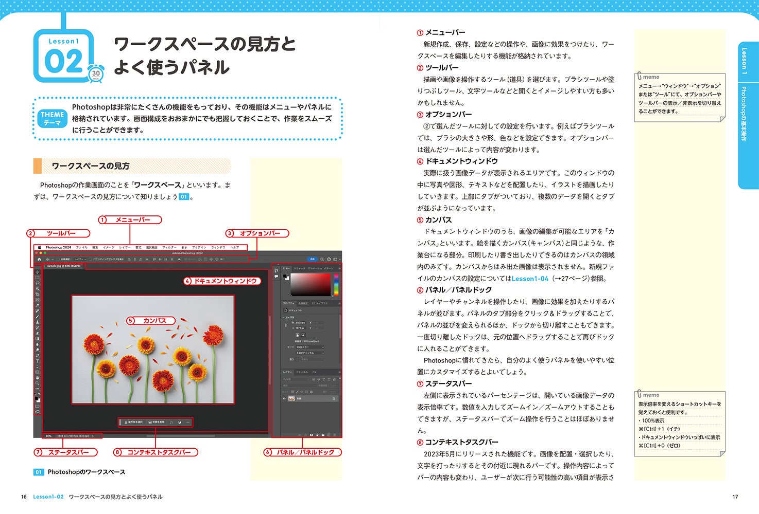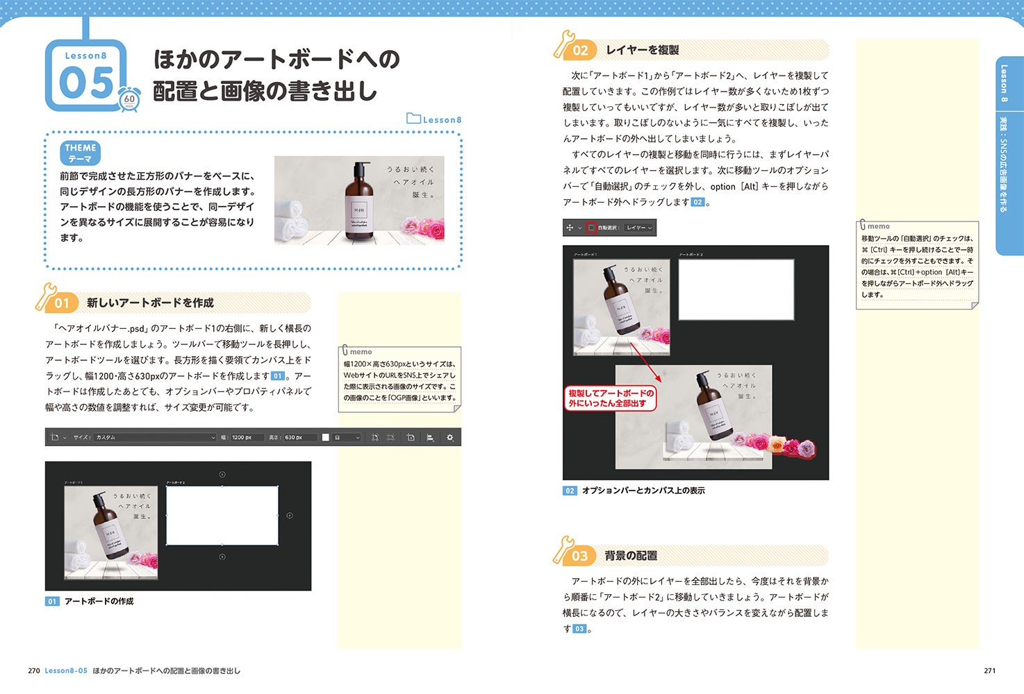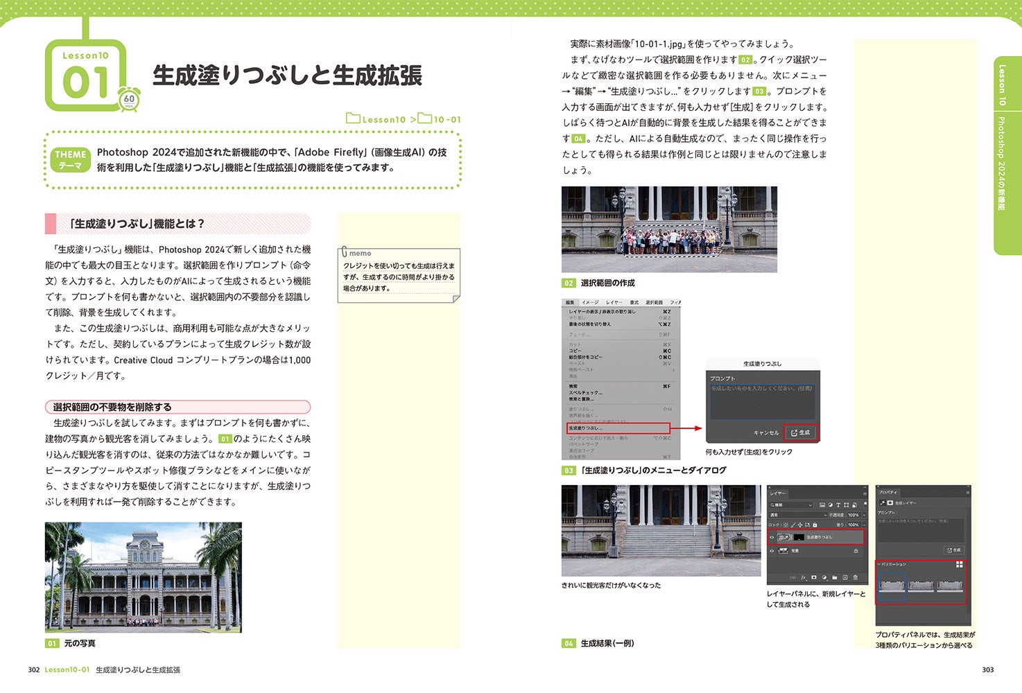 そしてLesson8・9ではここまで学んだことを活かす実践パートとしてバナー制作にチャレンジし、Lesson10ではPhotoshop 2024から追加された新機能に触れる、といった流れになっています。