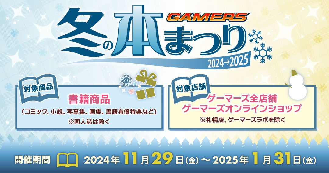 株式会社カードラボ ゲーマーズ(本社:東京都豊島区、https://www.gamers.co.jp/ 以下ゲーマーズ)は、2024年11月29日(金)より「ゲーマーズ 冬の本まつり2024⇒2025」を開催することをお知らせいたします。