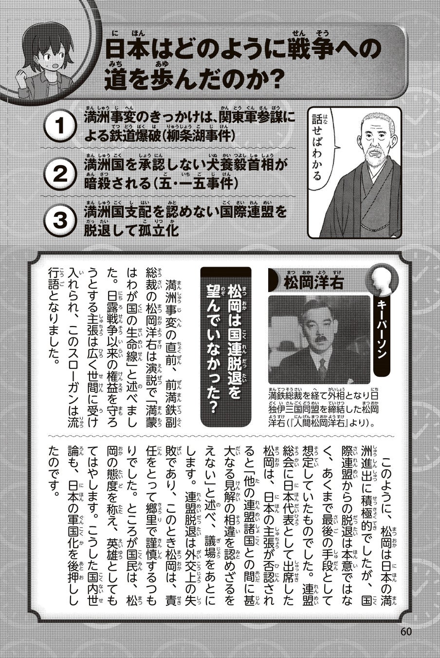 ② 「日本の歴史」(まんが、マメ知識、コラム、資料ページ)と全巻セットに含まれる「人物図鑑」「史跡出来事図鑑」を読み込むことで解答可能になる。