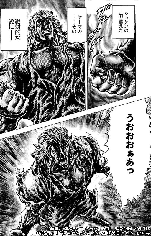 著作権表記:©武論尊・原哲夫/コアミックス 1983 版権許諾証GC-218 ©SEGA