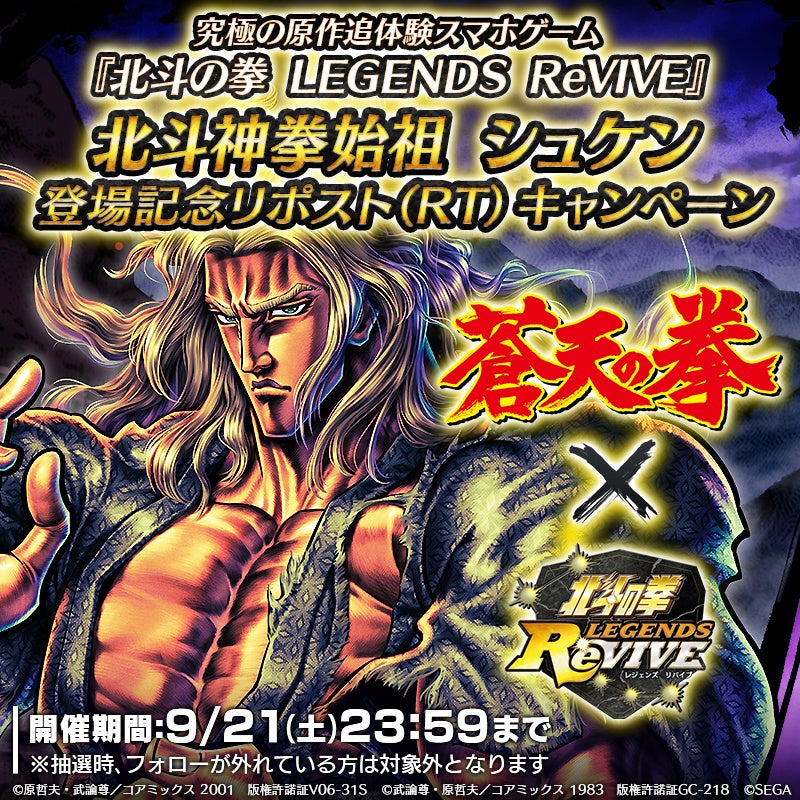 新拳士のUR「北斗神拳始祖 シュケン」登場を記念したリポストキャンペーンを開催します。
