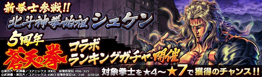 ◆UR「北斗神拳始祖 シュケン」参戦! “5周年蒼天の拳コラボランキングガチャ”開催