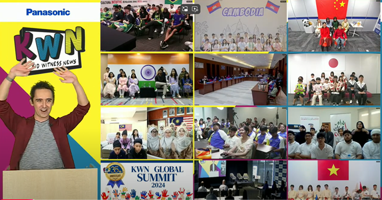 キッド・ウィットネス・ニュース(KWN)は、パナソニックグループがグローバルに展開する、小・中・高等学校レベルの子どもたちを対象とした教育支援プログラムです。映像制作を通じて、創造性やコミュニケーション能力を高め、チームワークを養うことを目的としています。2024年は、ブラジル、中国、カンボジア、インド、インドネシア、フィリピン、マレーシア、日本、UAE、USA、ベトナムの11カ国から、460チーム、4,000人を超える子どもたちが映像制作に参加しました。