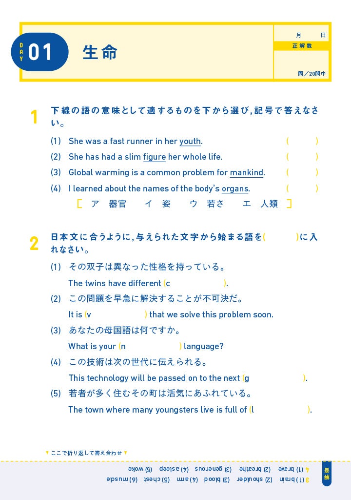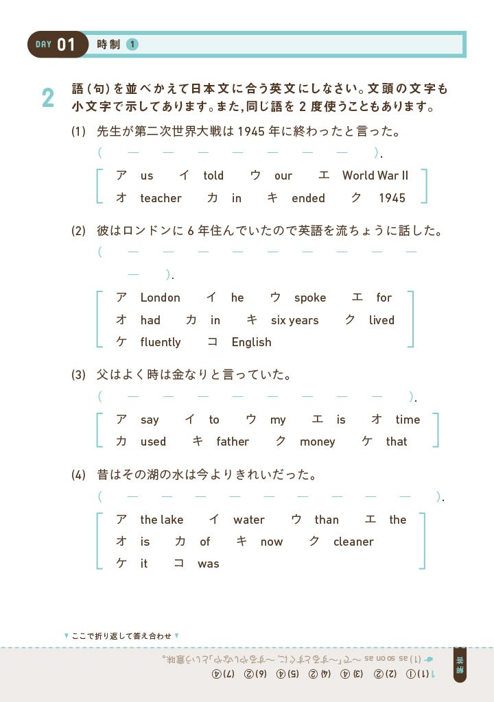 問題ページの下を折り返せば、すぐに答え合わせができます。