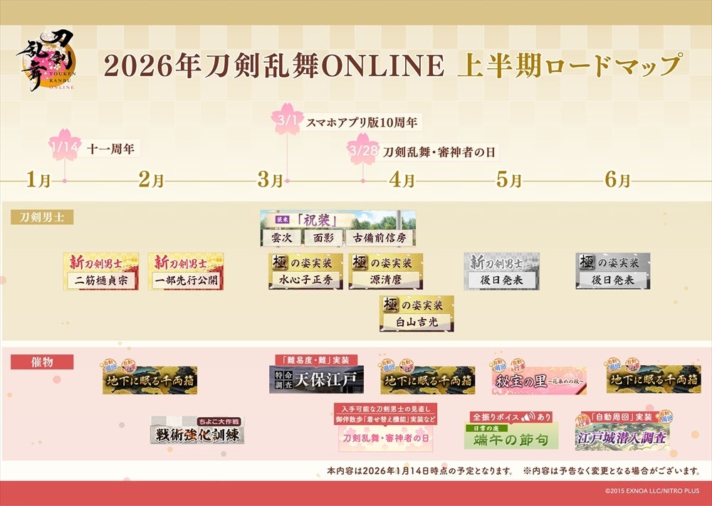 『刀剣乱舞ONLINE』の2026年上半期のロードマップが公開されました。