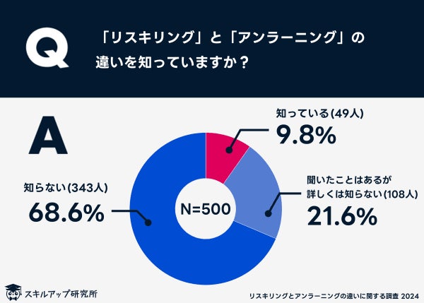 リスキリングとスキルアップの違いを知っているのは35%、リスキリングとアンラーニングの違いを理解しているのは9.8%
