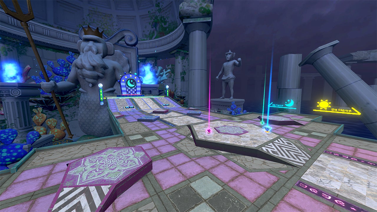 チームの仲間と運搬や妨害を分担して、連携してプレイするのが勝利へのカギ! 宝石を運ぶと花火が打ちあがったり宝石が台座の周りを回ったり、ド派手な演出も盛りだくさん!