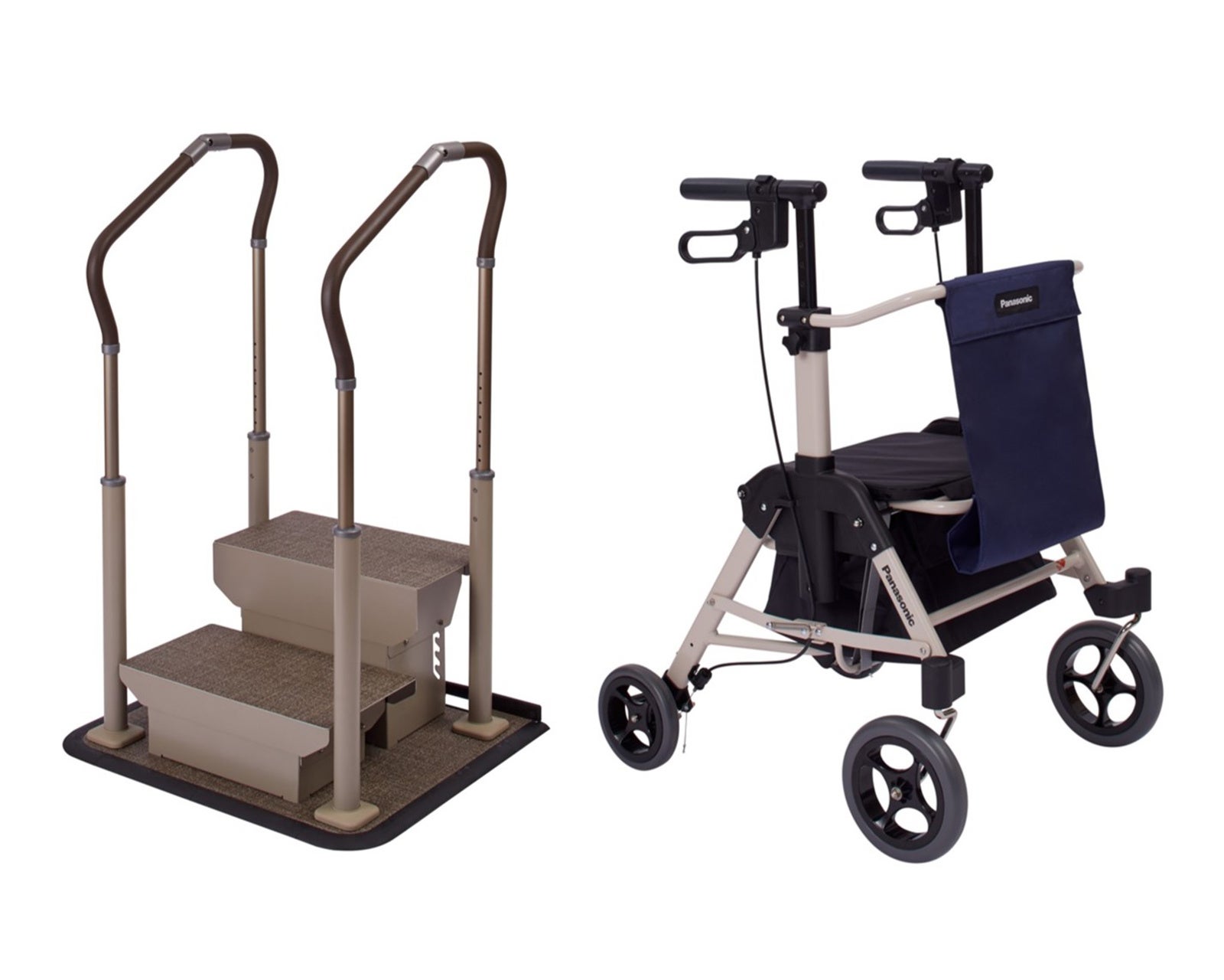 歩行を補助する介護用品群「スムーディ」シリーズにステップ付き手すりとスリムな歩行車の2製品を発売