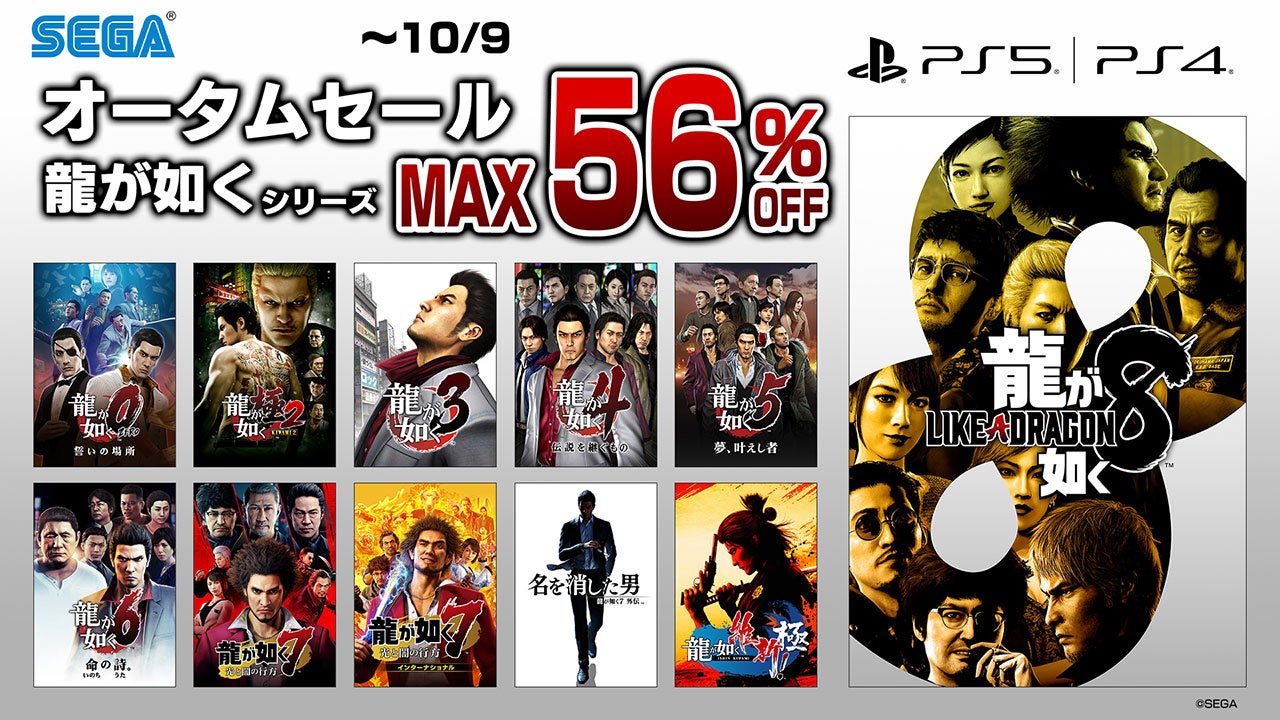 セール対象タイトルや割引率については特設サイト( https://www.sega.jp/special/sale/ )をご確認ください。なお、セール終了日は2024年10月9日(水)です。