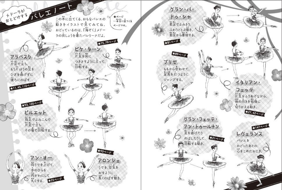 ファッションページ、バレエの動きの紹介など、物語を更に楽しめる内容です。