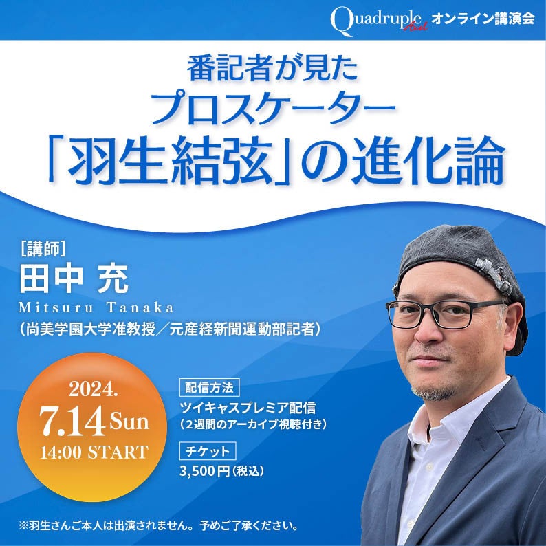 7月14日(日)14:00〜 スポーツライター・田中充さん オンライン講演会「番記者が見たプロスケーター『羽生結弦』の進化論」を開催!