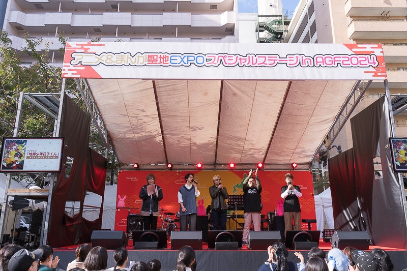 待望のTVアニメ最新作の放送を控える中、2024年11月9日(土)「アニメ&まんが聖地EXPOスペシャルステージ in AGF2024」にて「TVアニメ『地縛少年花子くん』AGF2024ステージ」が実施!緒方恵美(花子くん・つかさ役)、土岐隼一(蒼井 茜役)、福井洋平(2期監督)、飯田里樹(音響監督)、片山悠樹(プロデューサー)が作品にまつわるトークを繰り広げました。