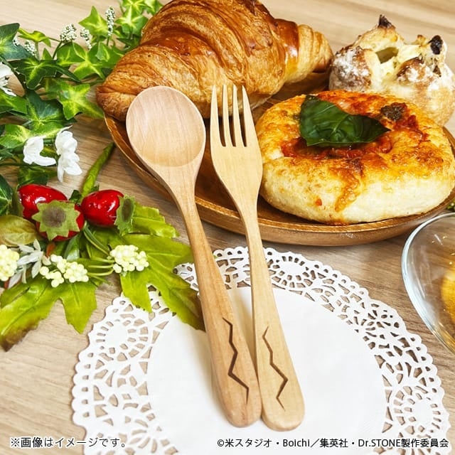 千空の目元をモチーフにデザインされた木製カトラリーセットが登場!