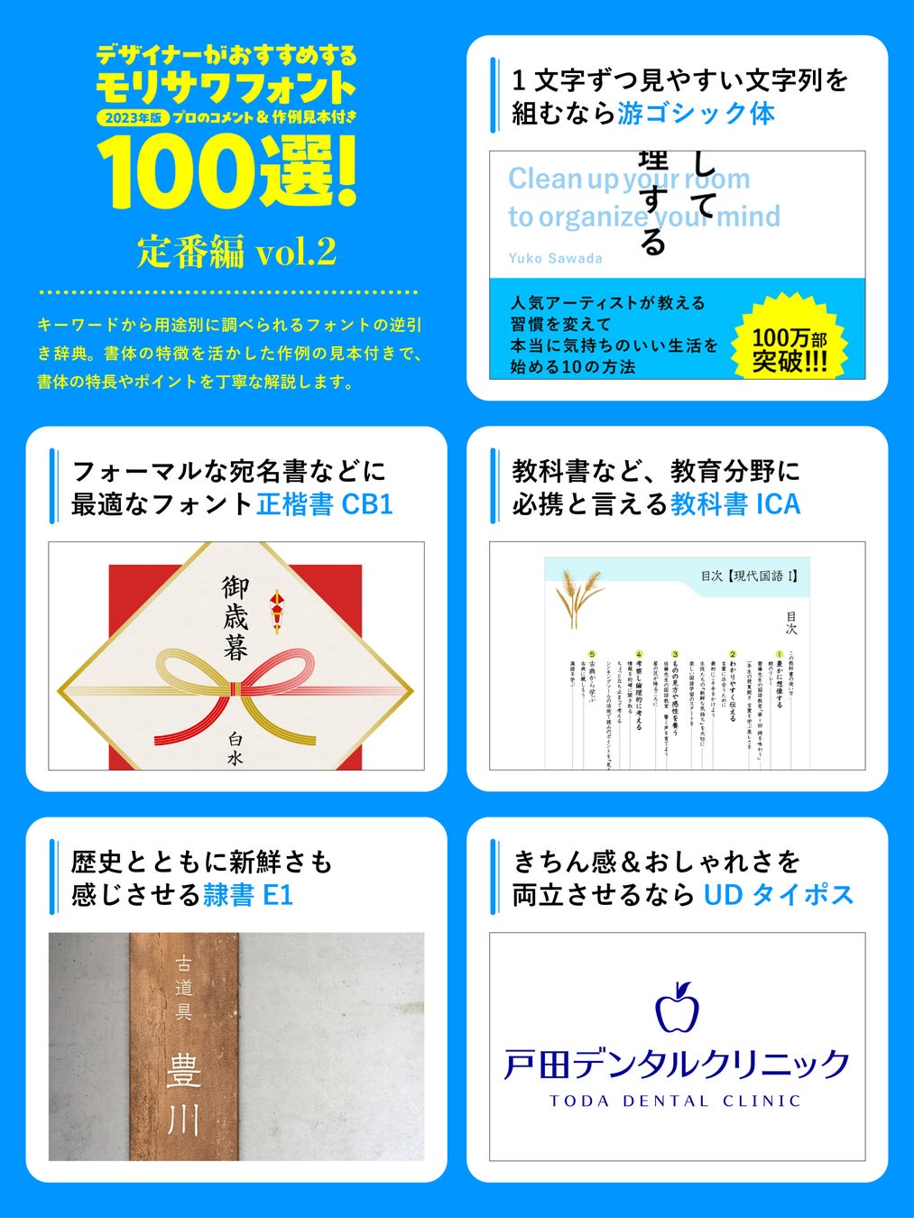 フォント逆引き辞典で書体の使い方を学ぼう! 「デザイナーがおすすめするモリサワフォント100選!」を公開