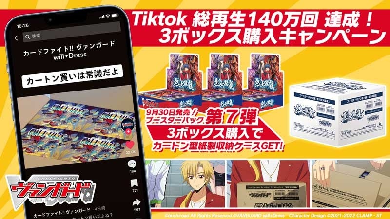 『カートン買いは常識だよ?』ヴァンガード公式TikTok総再生数140万回達成!3ボックス購入キャンペーン開催決定!
