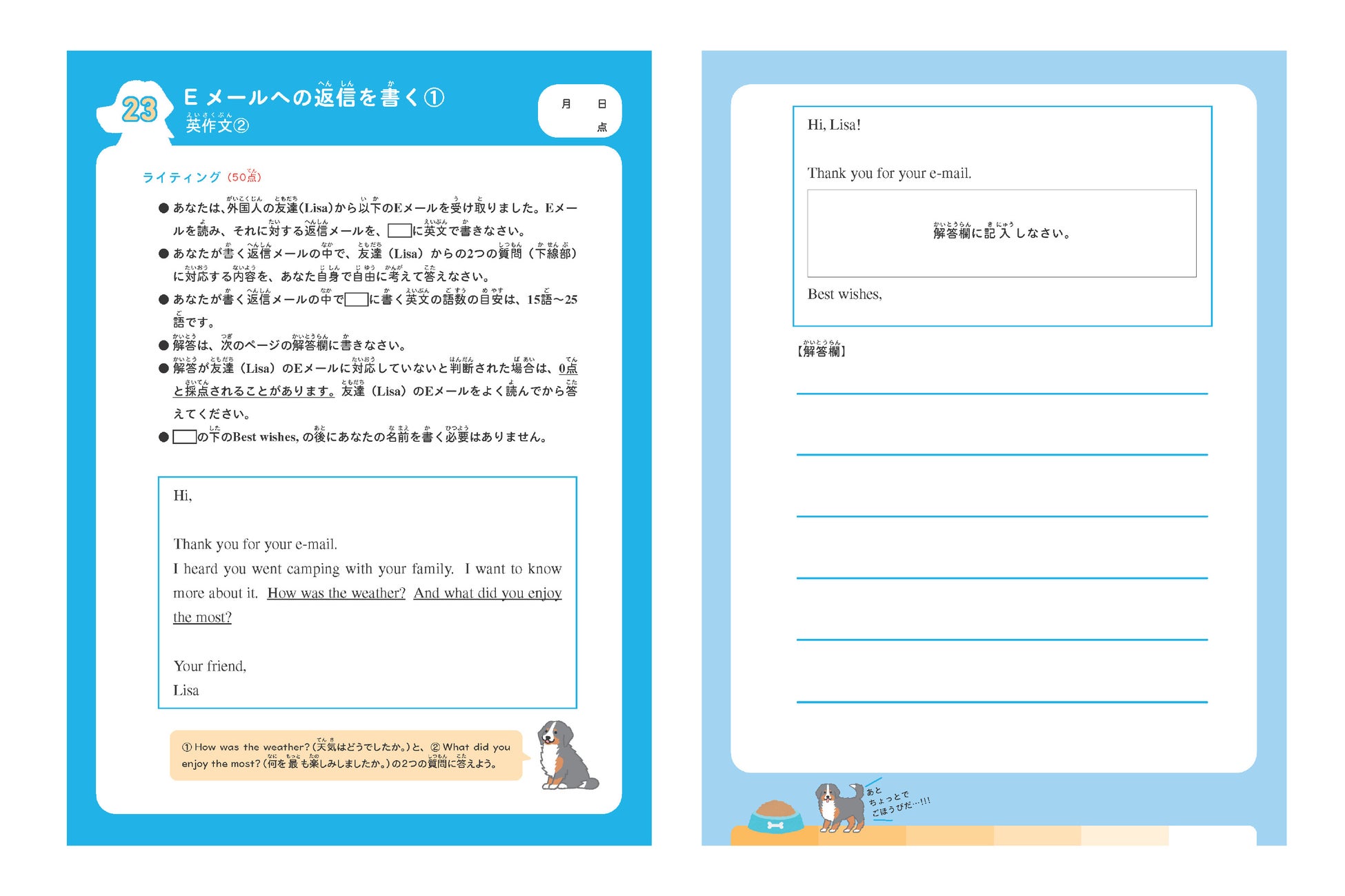 2024年度第1回検定から、3級以上の級で新たな形式の問題が一部出題されます。『小学生からできる! 1日10分英検合格ドリル 3級』は、英検3級に新たに追加される「Eメール」のライティング問題に対応。新試験対策にも、安心してお使いいただけます。