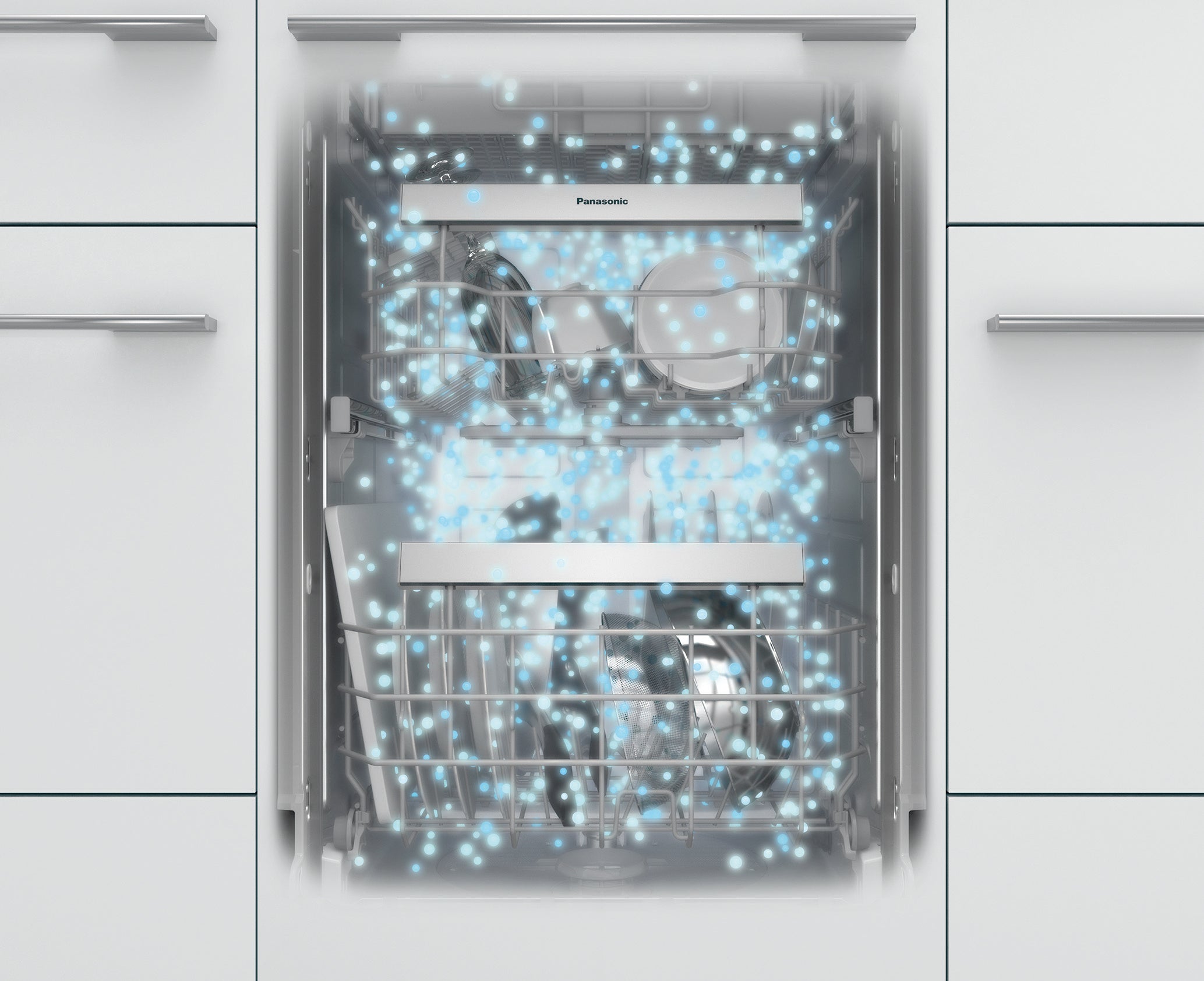 ※6 <ナノイーX送風による食洗機庫内の菌の抑制について> ●試験機関:一般財団法人 北里環境科学センター●対象品番:NP-45EF1W●試験方法:食洗機庫内の菌液付着食器の生菌数測定(寒天平板培養法による)●試験報告書番号:北生発2024_0185号●除菌方法:ナノイーXを放出●除菌の対象:庫内食器類●試験結果:8時間後で菌の減少率99%以上(1種類のみの菌で実施)。除菌効果は、周囲環境(温度・湿度)、運転時間、食器の量や位置、汚れの程度により異なります。