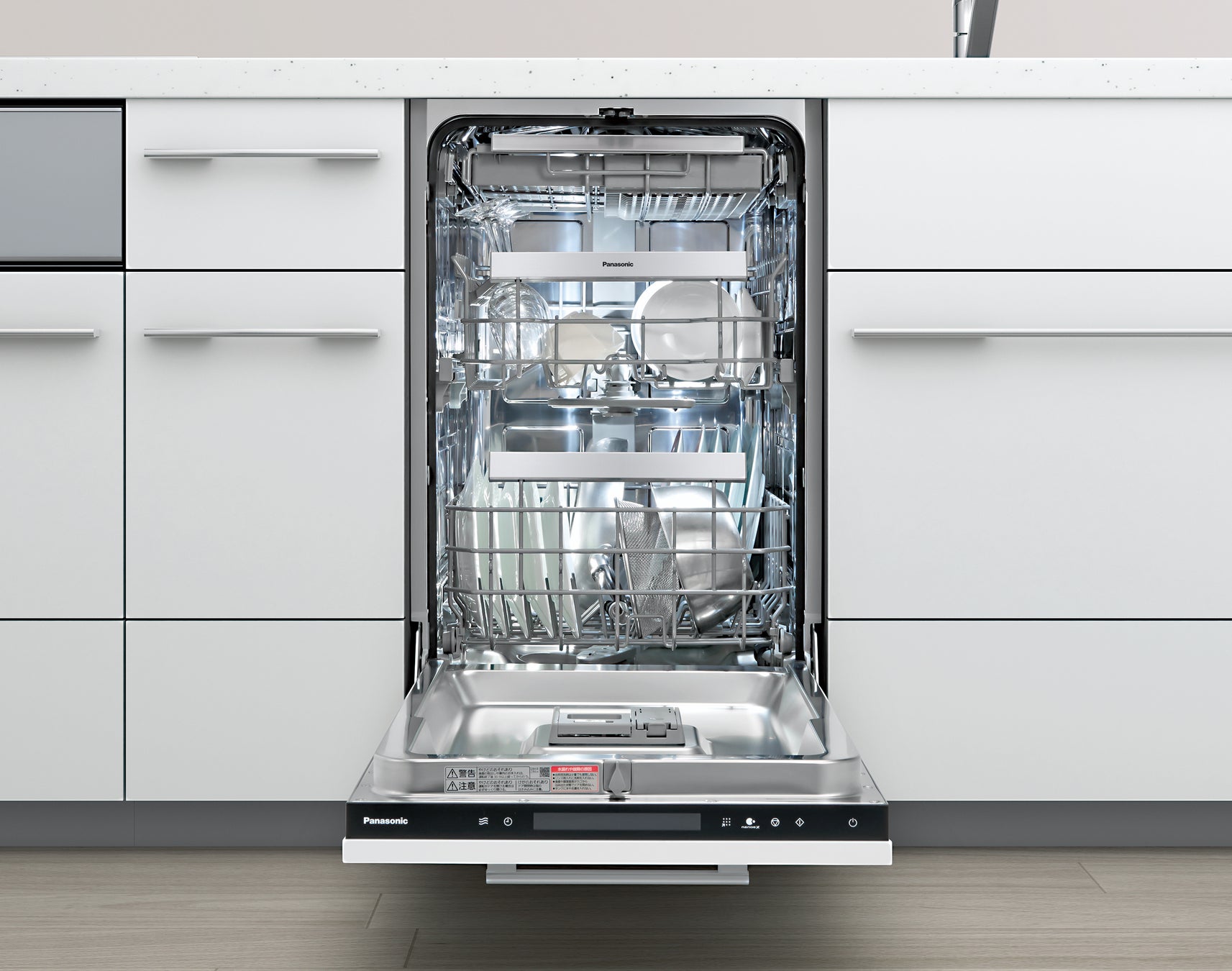 パナソニック株式会社(以下、パナソニック)は約9人分(※1)の食器や調理器具をまとめて洗える大容量でコンパクトな幅45 cmのビルトイン食器洗い乾燥機 フロントオープンタイプ「NP-45EF1W」を、2025年2月(*)に発売します(※2)。