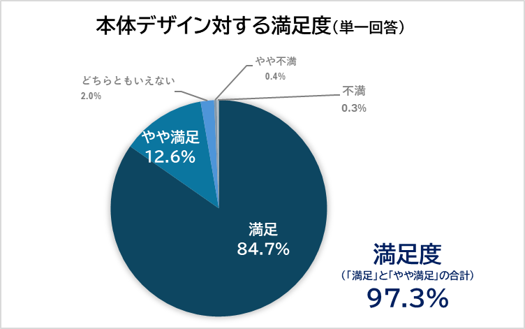 ラムダッシュ パームインのデザインに対する満足度は97.3%と高く、「デザインや使い方を含めて画期的。大事に長く使いたい。」という声もいただいています。