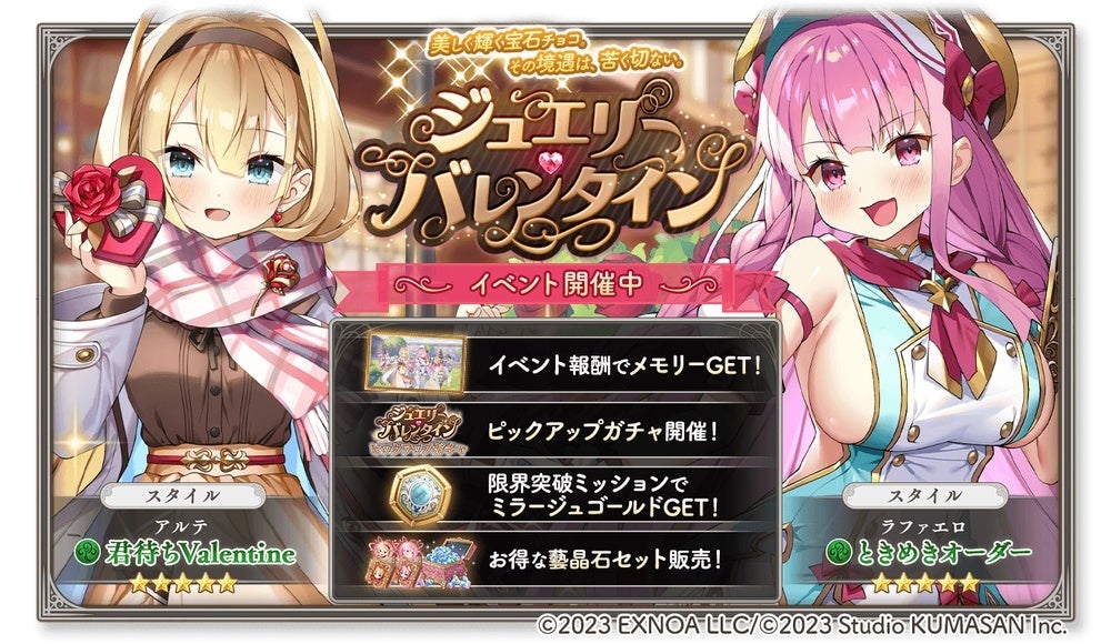 〜アルテ★5スタイル【君待ちValentine】とラファエロ★5スタイル【ときめきオーダー】が新登場の、ピックアップガチャも開催!〜