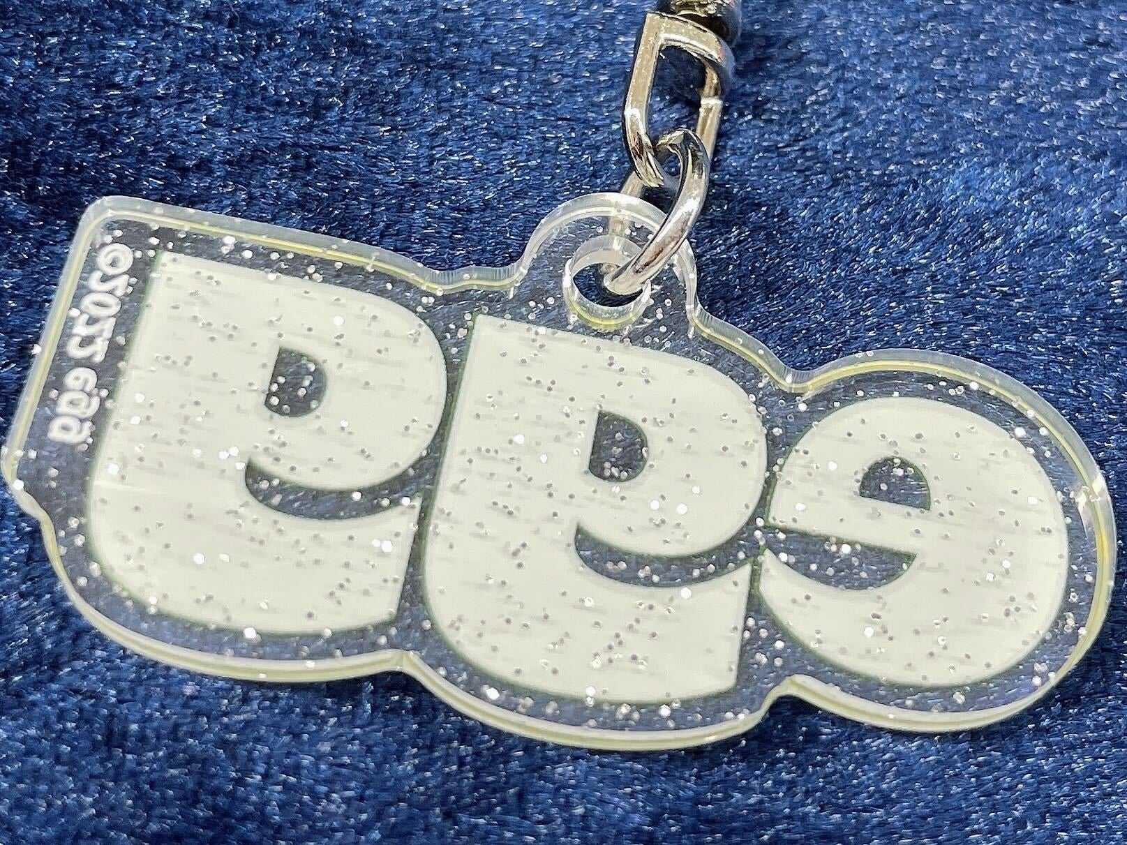 ロゴがデザインされたかわいいアクキーはラメが本体に散りばめられているので、光があたるとキラキラ光ってとってもかわいいかわいいです♪