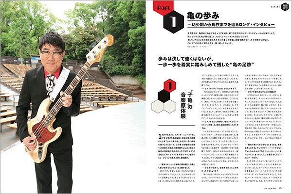 椎名林檎率いる東京事変のバンド・メンバーであり、さまざまなアーティストのベーシストとしても活躍。また同時に、日本を代表するプロデューサー/アレンジャー/作詞作曲家である亀田誠治。そんな日本の音楽史に名を刻む彼が、今年で還暦を迎えました。この60歳というひとつの節目を迎えた亀田誠治を、ベース・マガジンでは改めてフィーチャー。表紙巻頭企画として、50ページを超えるボリュームで特集を掲載しています。