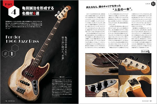 これまでの人生を振り返るロング・インタビューでは、楽器の原体験から現在までを振り返ってもらったほか、ベースや音楽、仕事に対する考えや哲学も語ってくれています。また、自身が影響を受けた作品60枚を紹介するページでは、彼の音楽的ルーツを知ることができるでしょう。そのほか、愛用機材紹介ページでは、自身の楽器に対する思いを熱く語ってくれています。