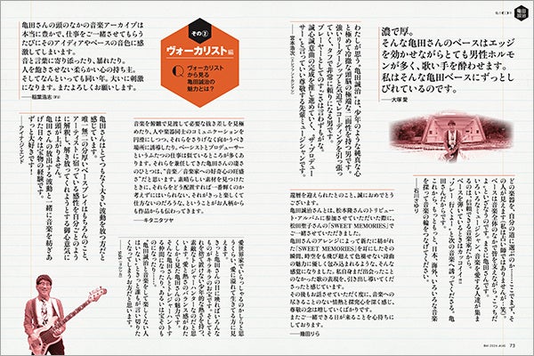 そのほかKing Gnuのベーシストである新井和輝との対談や、親交のあるミュージシャンが語る“亀田誠治の魅力”など、さまざまなコンテンツで構成。圧倒的な熱量で亀田誠治を深堀りしています。