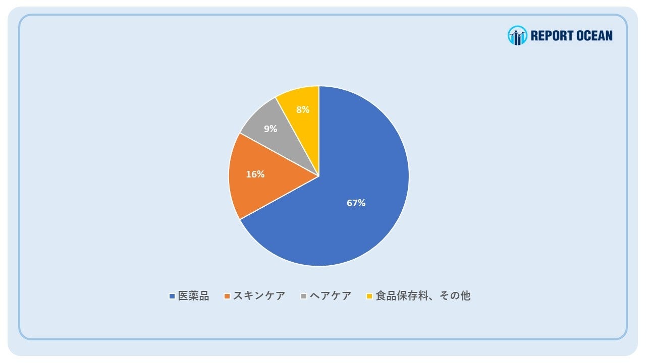 用途に応じて、市場は医薬品、スキンケア、ヘアケア、食品保存料・その他に分類されます。