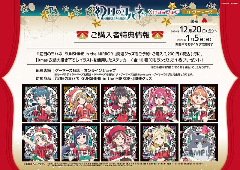 株式会社カードラボ ゲーマーズ(本社:東京都豊島区、https://www.gamers.co.jp/ 以下ゲーマーズ)は、2024年12月20日(金)より「幻日のヨハネ -SUNSHINE in the MIRROR-」Xmasフェア」を開催することをお知らせいたします。