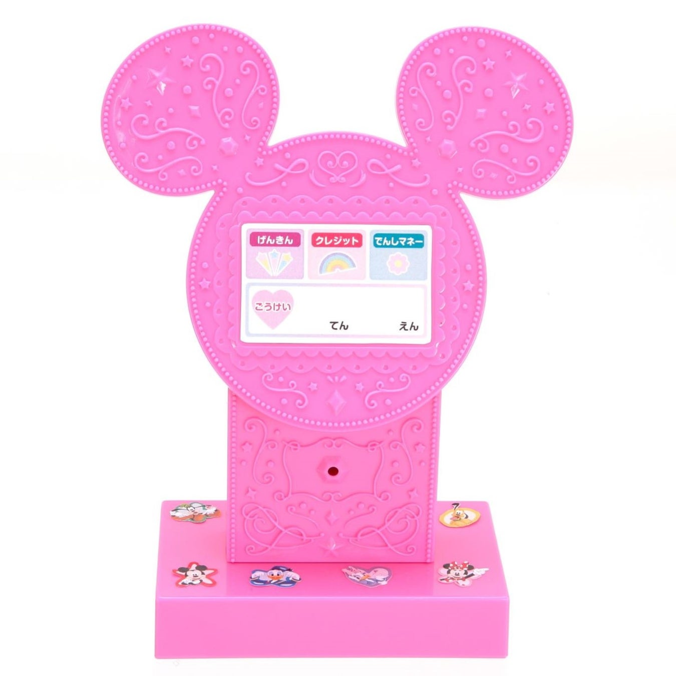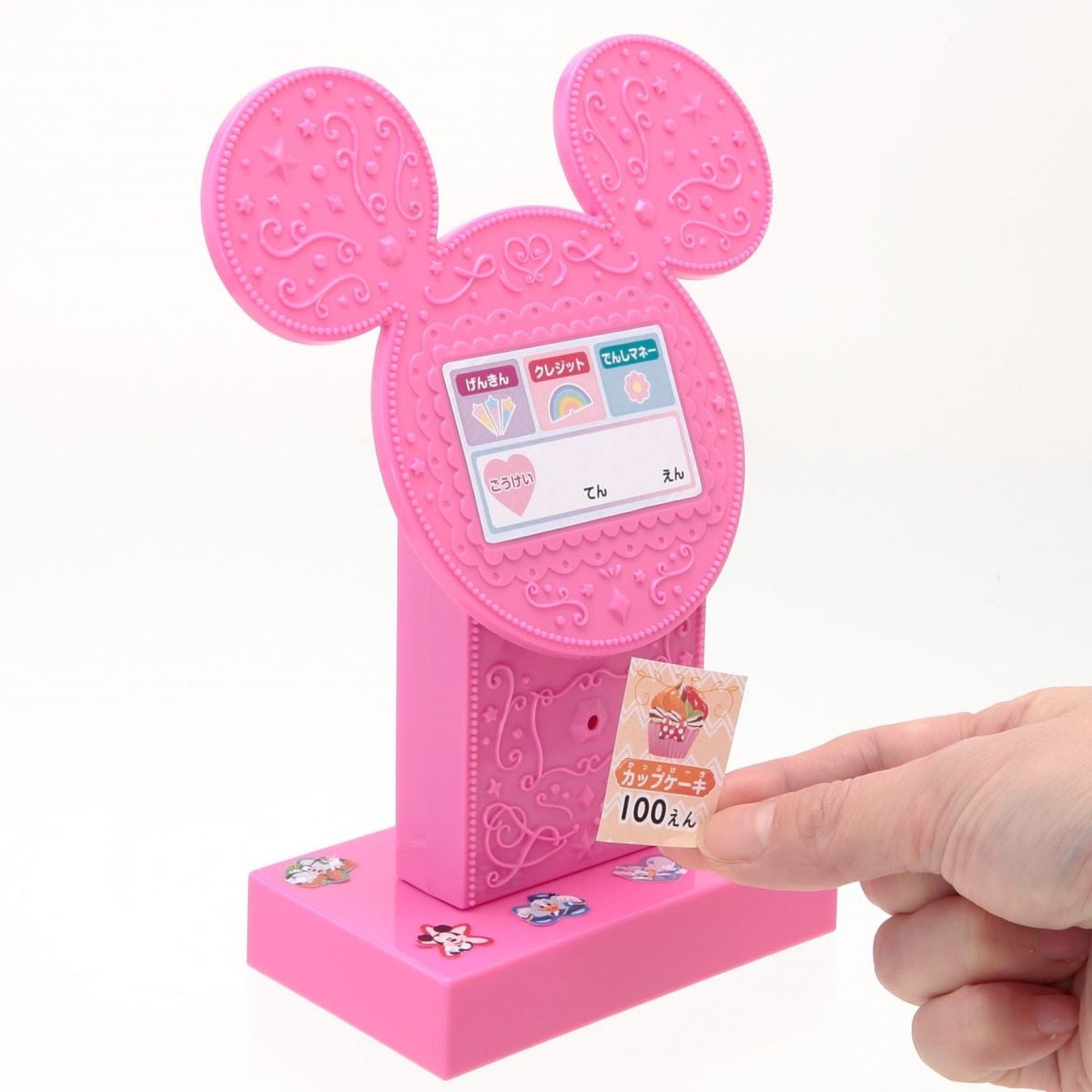 ミッキーの形のかわいいセルフレジでお買いものごっこをしながら、楽しくお金の勉強ができます。