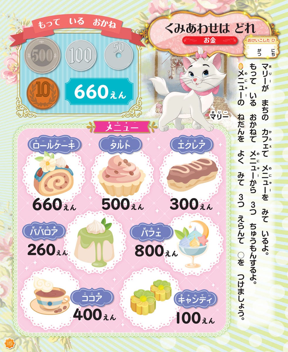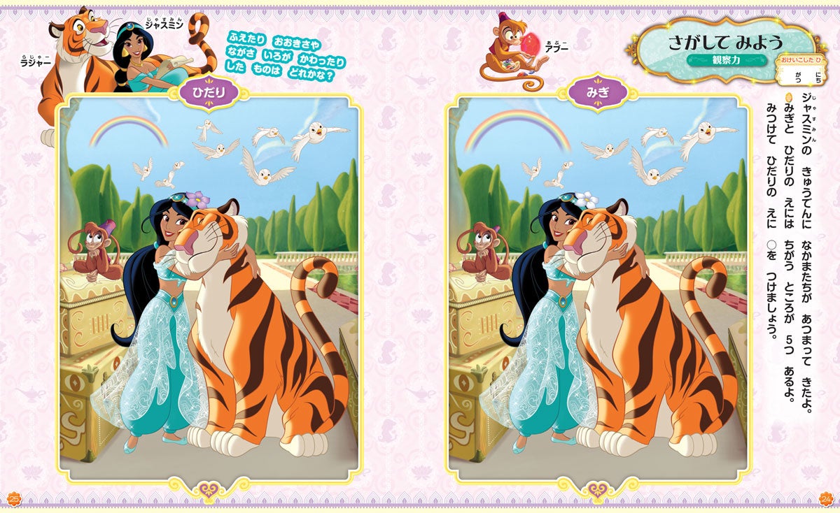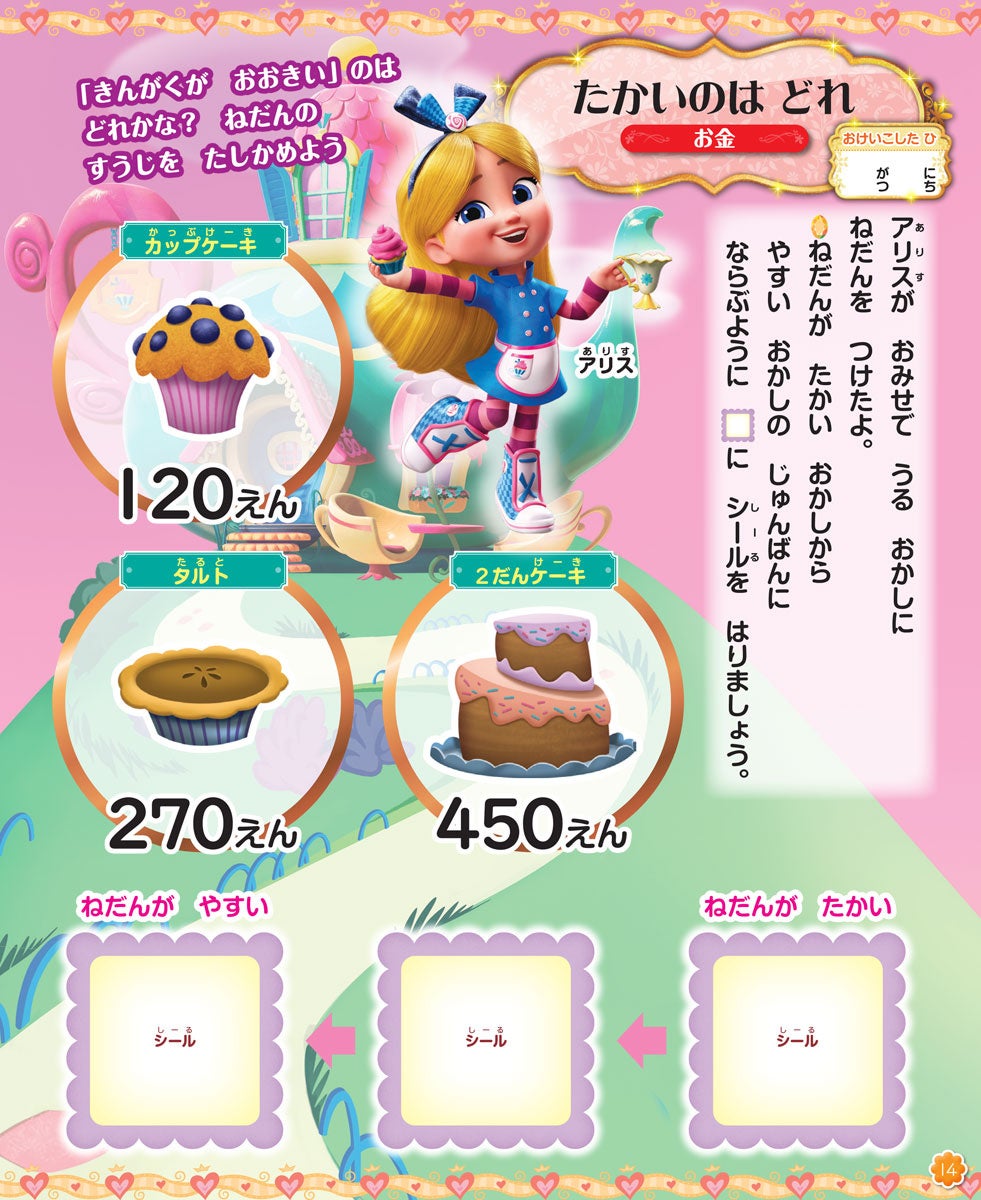 ディズニーの物語にまつわるわくわくする内容や、かわいいキャラクターのシールを貼る問題で構成されているので、遊び感覚で取り組むことができます。