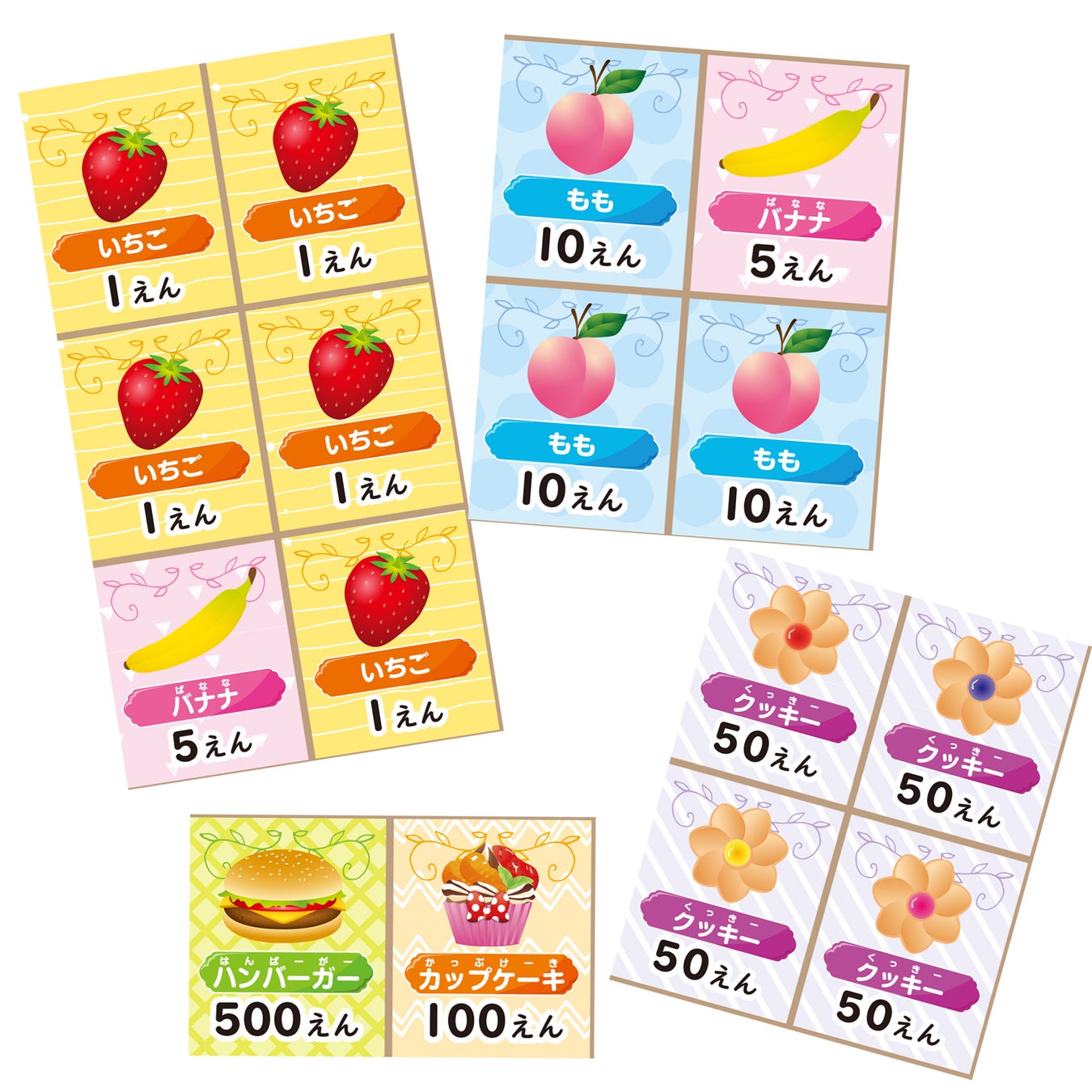 いろいろな種類の食べもののカードがあるから、お店屋さんごっこも楽しめます♪
