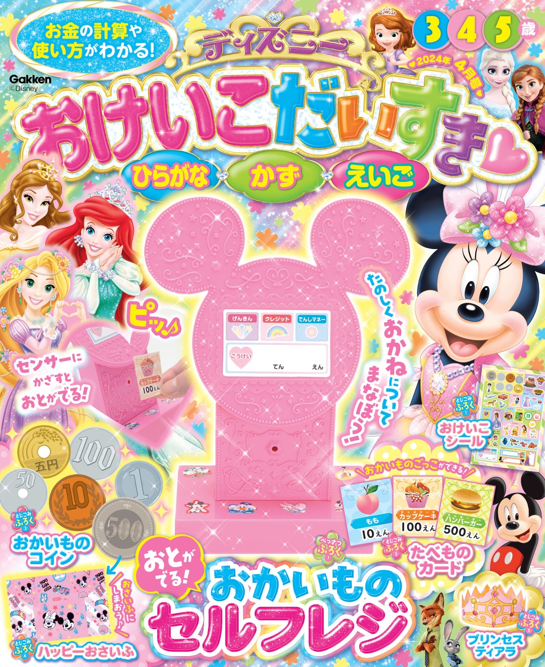学習雑誌『ディズニー おけいこだいすき 2024年4月号』が発売! 付録「おかいもの セルフレジ」で、楽しくお金のお勉強をしよう♪