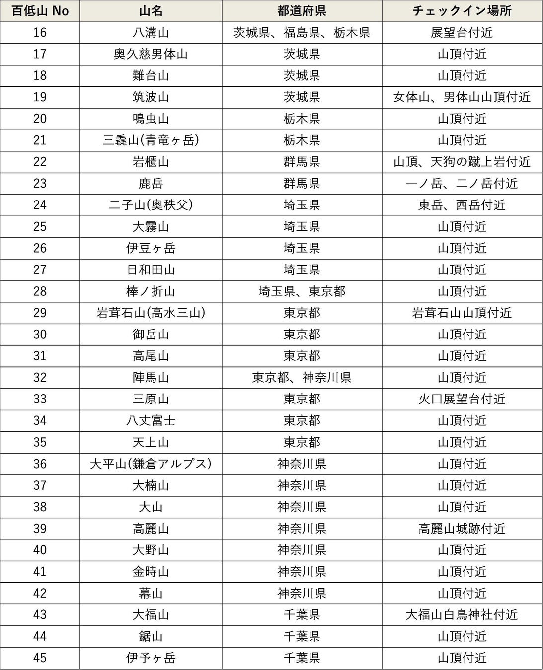 日本初(※)の「日本百低山スタンプラリー」に関東エリア30山を追加! 北海道・東北エリアに続き全45山が対象に