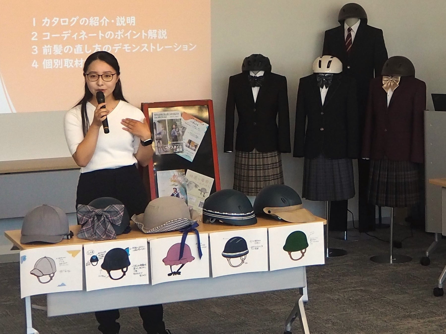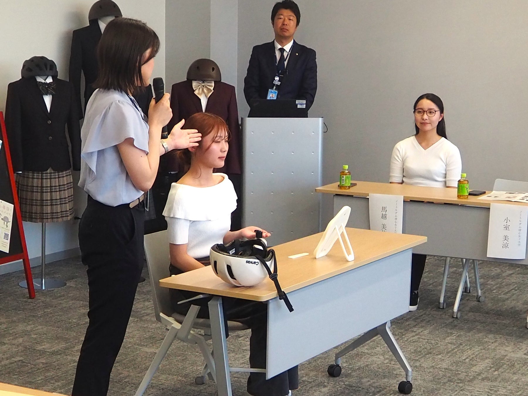 完成披露会では、制服とヘルメットの“かわいい・かっこいい”コーディネートのポイントや、前髪のなおし方を動画とデモンストレーションで紹介。特に15~17歳の自転車事故が増加する5~7月に向けて、安全とオシャレを両立する提案を行いました。