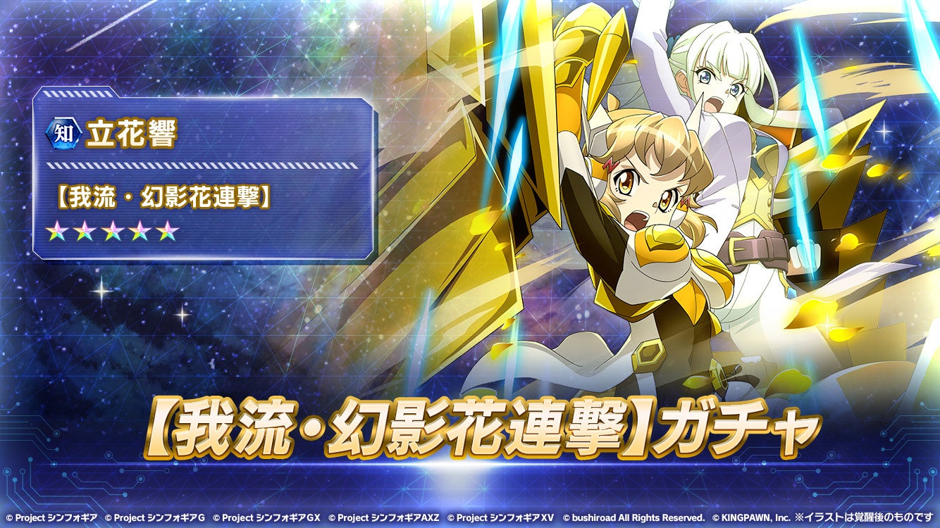 - 新★5シンフォギアカード「立花響【我流・幻影花連撃】」が初登場する「立花響【我流・幻影花連撃】ガチャ」が開催中!
