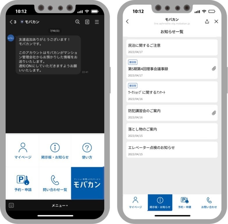 同サービスは、マンションに貼り出されるお知らせや、区分所有者や居住者へ送付する書面等といった各種情報を電子化し、各住戸のインターホンやLINE(※)ミニアプリに配信することを可能とします。