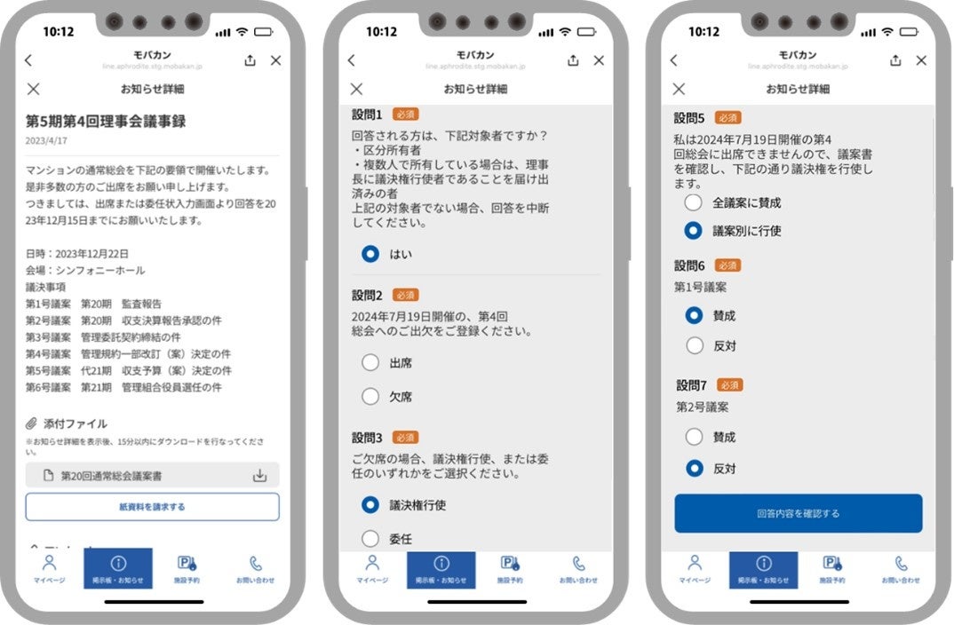 トラストコミュニティは、「モバカン」の導入により、これまで紙媒体で運用していた管理組合への各種情報発信及び議決権行使等を電子化し、印刷・郵送業務の軽減を行うとともに、管理組合様の利便性向上を目指します。