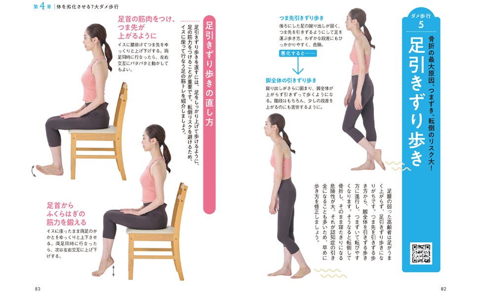 ウォーキングで健康になる本は多数発売されていますが、本書ではそれだけでなく、代表的な7パターンの『間違った歩き方』と、なるべく少ない手間で改善するための方法を動画付きで徹底解説しています。
