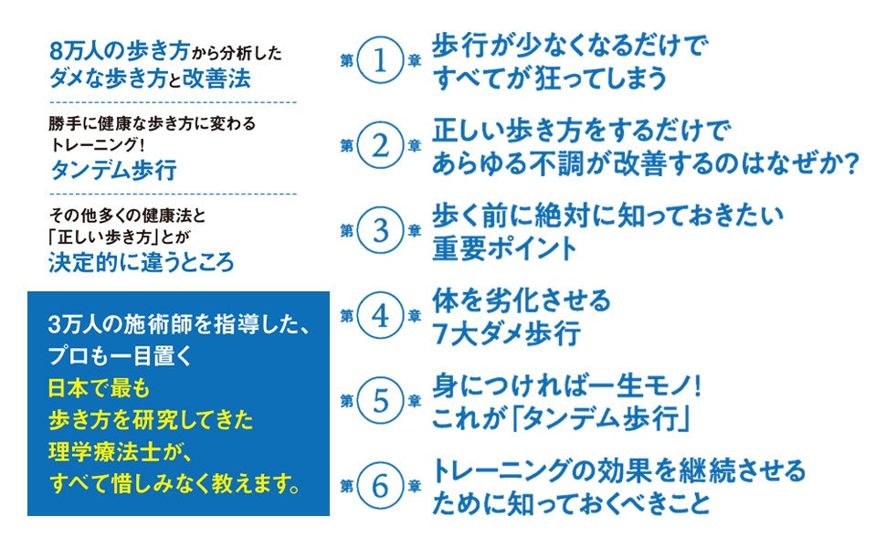 日本人の8割が身体を壊す歩き方をしていると警鐘を鳴らす著者が考案した、健康で長生きできる歩き方―――それが「タンデム歩行」です。