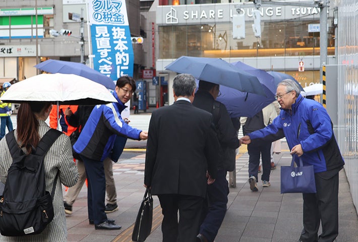 自動車税制の改革を求める自動車ユーザーのメッセージ(チラシ 添付参照)を配布し、実際に自動車の税金に対する意見・要望を「生の声」として集めて、最終的に国会議員や自治体トップへお届けしていきます。