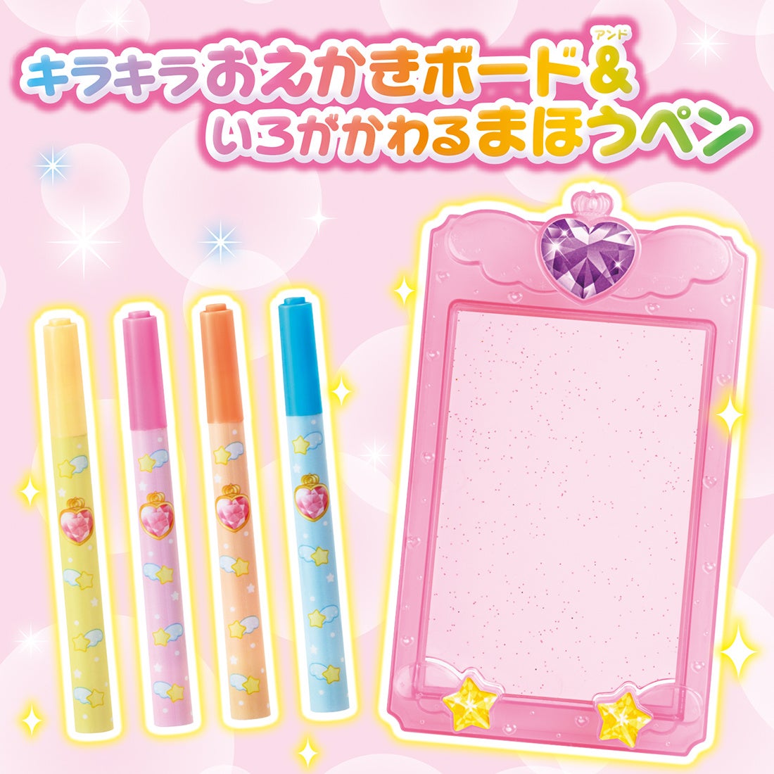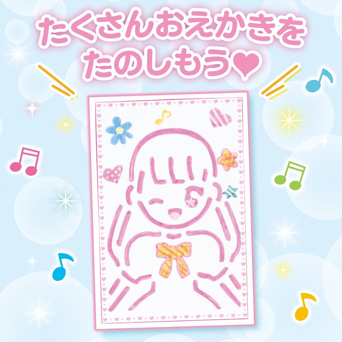 付録のおえかきボードと、いろがかわるまほうペンをつかっておえかきをすれば、人気キャラクターやかわいい女の子がかけるようになります! いっぱいおえかきを楽しんでください!