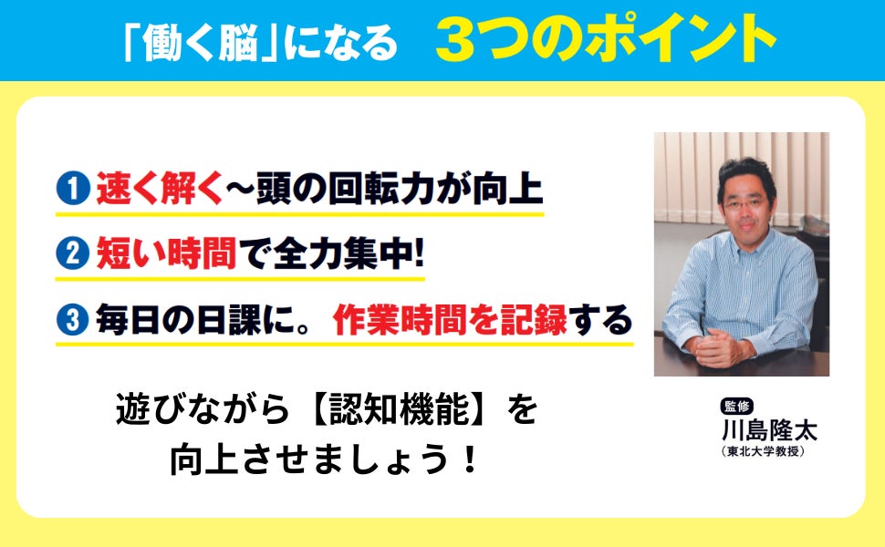 ◆脳の前頭葉の血流が活性化! 脳機能研究の第一人者・川島隆太東北大学教授監修の人気シリーズ「大きな字で脳活性! らくらく脳ドリル60日」が1年遊べるお得なセットが登場