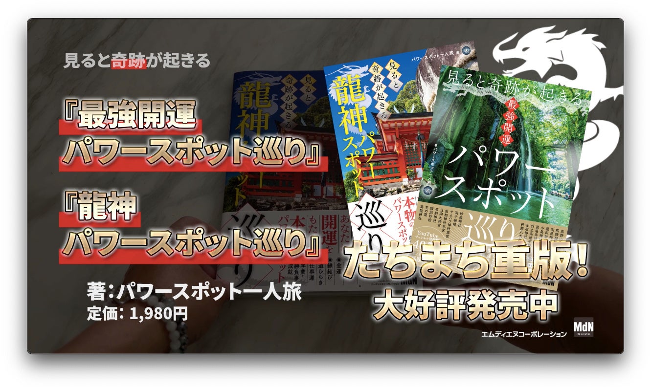 【期間限定】全文まるごと試し読みキャンペーン実施! YouTube登録者数約43万人の著者による『見ると奇跡が起きる龍神パワースポット巡り』、新宿FLAGS VISIONにて動画も放映!