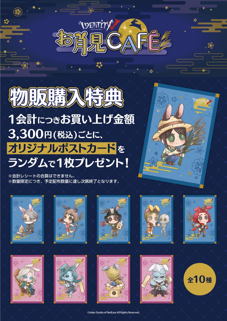1会計につきお買い上げ金額3,300円(税込)ごとに、オリジナルポストカード(10種)をランダムで1枚プレゼント!